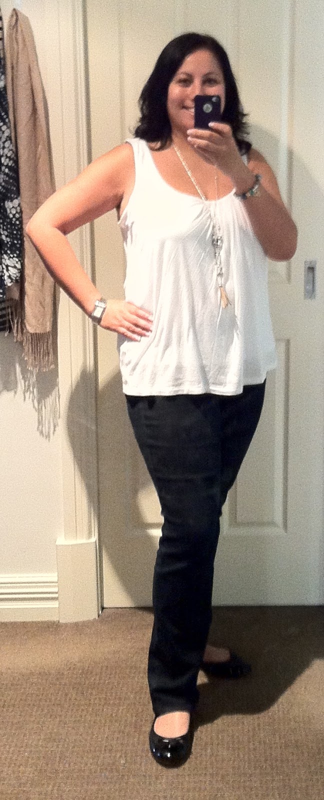 Sunday was spent doing my hour on the school fete stall, and then wandering around with the kids for a short while afterwards. Coffee back at my place with my parents and then a lazy afternoon, followed by fish and chips down by the beach for dinner. My kind of day! Navy layered tank custom made from Etsy seller ErinAlexandraKlym which also includes the necklace. I have a couple of pieces from here and will buy some more as my budget allows as they are very well made, totally unique in design and made to measure. I paired the top with dark skinny jeans from Ann Taylor and my favourite Nine West flats.